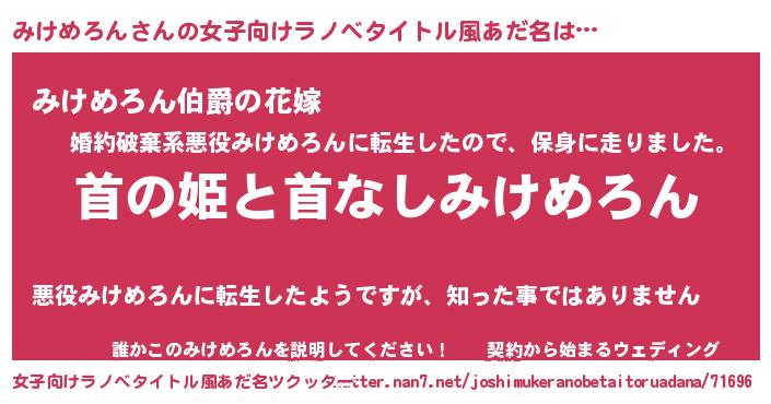 | 意味不明あだ名 | 『みけめろんフォーエバー』 |