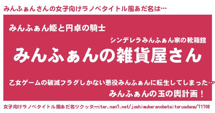 | 意味不明あだ名 | 『みんふぁんフォーエバー』 |