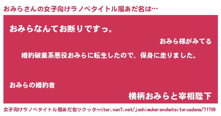 | 男性向けラノベタイトル風あだ名 | 『オミラスレイヤー』 |