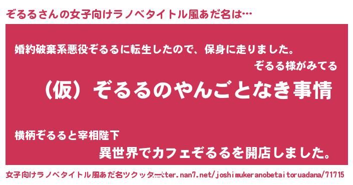 | 胡散臭い通販商品みたいなあだ名 | 『必ず成功するブレスレット…その名も「ぞるる」』 |