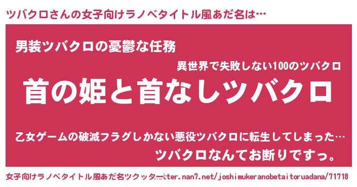| 意味不明あだ名 | 『自称ツバクロ』『永久保存ツバクロ』 |
