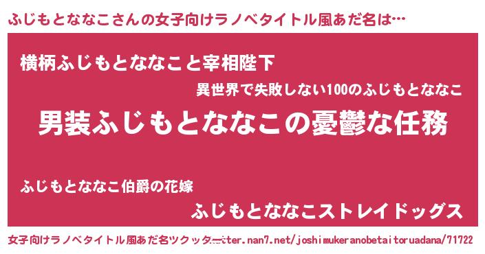 | 男性向けラノベタイトル風あだ名 | 『うちのふじもとななこが世界を掌握している!』 |