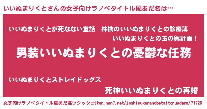 | 男性向けラノベタイトル風あだ名 | 『冴えないいいぬまりくとの育てかた』 |