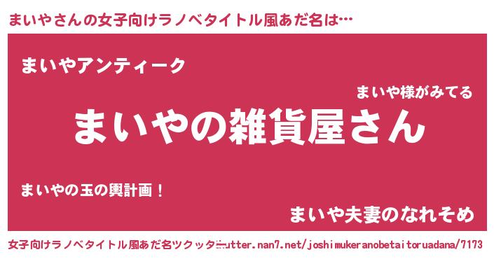 | 男性向けラノベタイトル風あだ名 | 『やはりまいやの青春ラブコメはまちがっている 』 |