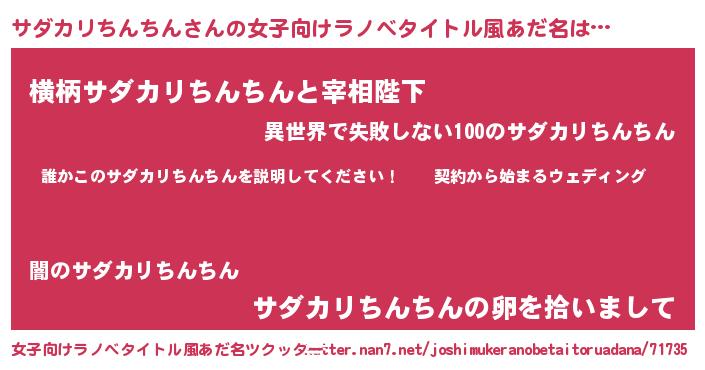| 男性向けラノベタイトル風あだ名 | 『サダカリチンチンアートオンライン』 |