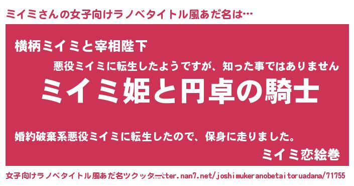 | 男性向けラノベタイトル風あだ名 | 『ミイミアートオンライン』 |