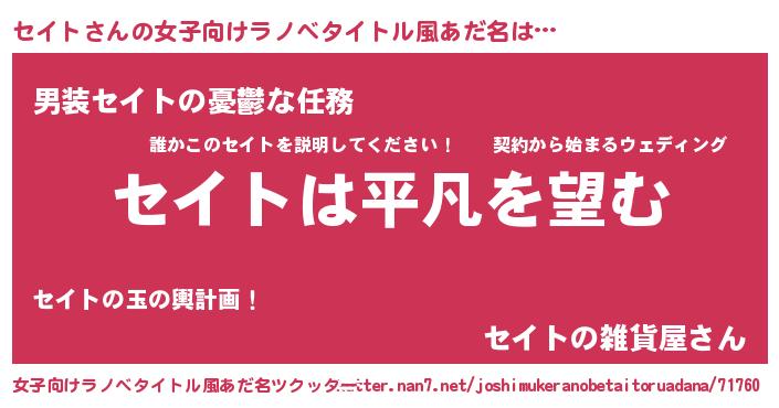 | 男性向けラノベタイトル風あだ名 | 『ダンジョンにセイトを求めるのは間違っているだろうか』 |