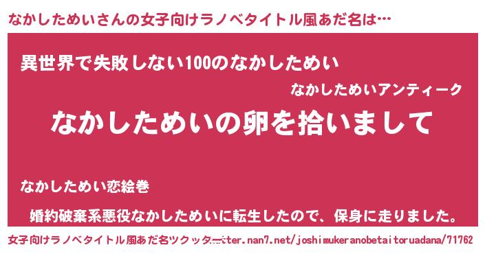 | 男性向けラノベタイトル風あだ名 | 『なかしためいの嫁は女の子じゃないと思った?』 |