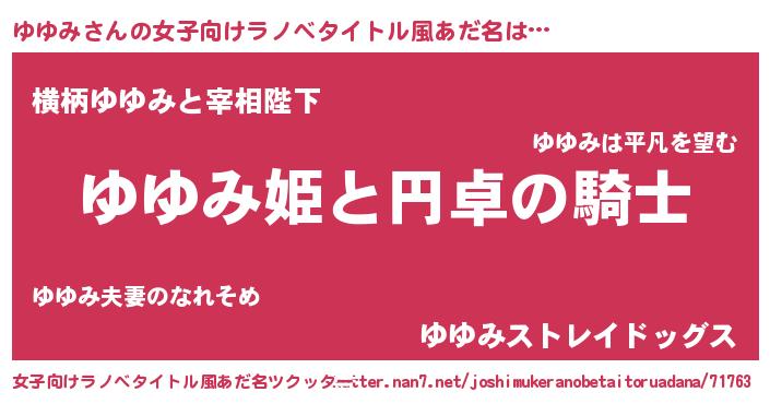 | 男性向けラノベタイトル風あだ名 | 『ゆゆみの憂鬱』 |