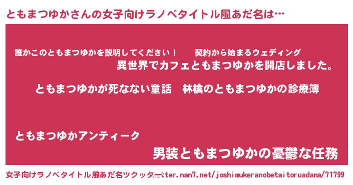 | 意味不明あだ名 | 『住所不定無職ともまつゆか(91歳)』 |
