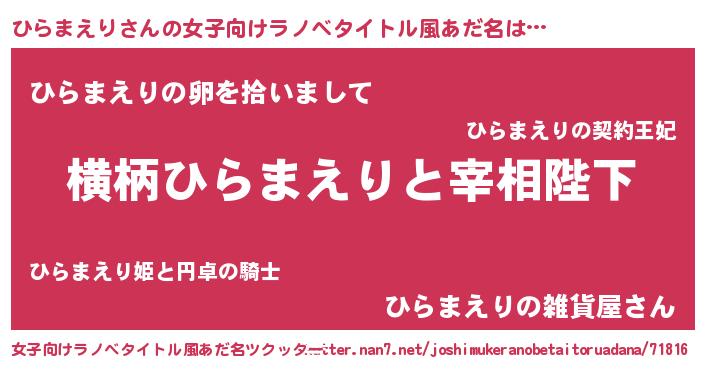 | 男性向けラノベタイトル風あだ名 | 『ひらまえりに滅ぼされるだけの簡単なお仕事です』 |