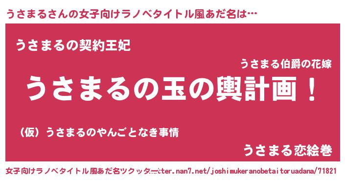 | 男性向けラノベタイトル風あだ名 | 『転生したらうさまるだった件』 |
