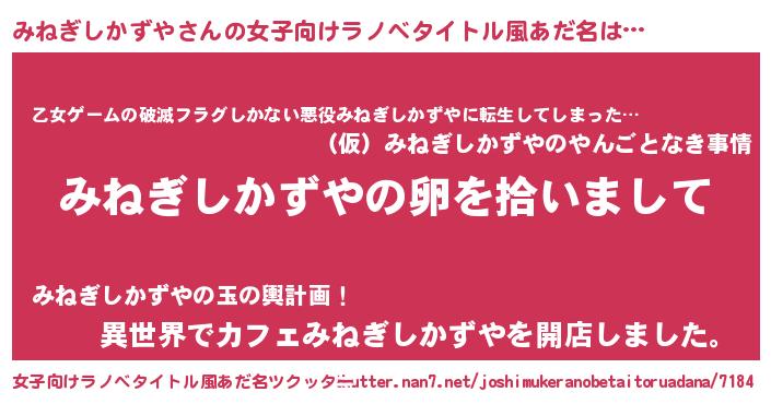 | 料理風あだ名 | 『ポテトとみねぎしかずやのキッシュ☆』 |