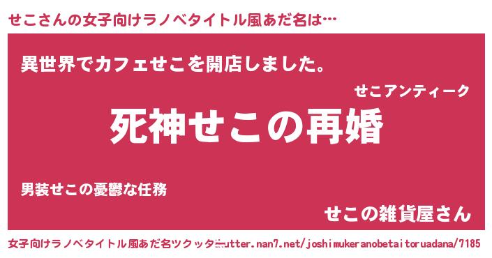 | 男性向けラノベタイトル風あだ名 | 『ノーゲーム・ノーセコ』 |