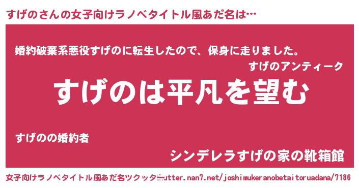 | 男性向けラノベタイトル風あだ名 | 『ダンジョンにすげのを求めるのは間違っているだろうか』 |