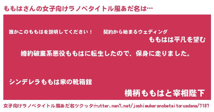 | 胡散臭い通販商品みたいなあだ名 | 『必ず成功するブレスレット…その名も「ももは」』 |