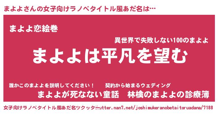 男性向けラノベタイトル風あだ名 | 『ダンジョンにまよよを求めるのは間違っているだろうか』 |