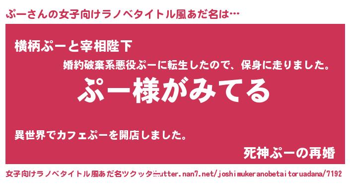 | ヒーロー風カッコイイあだ名 | 『天弓騎士プー』『慈愛の使者ぷー』 |