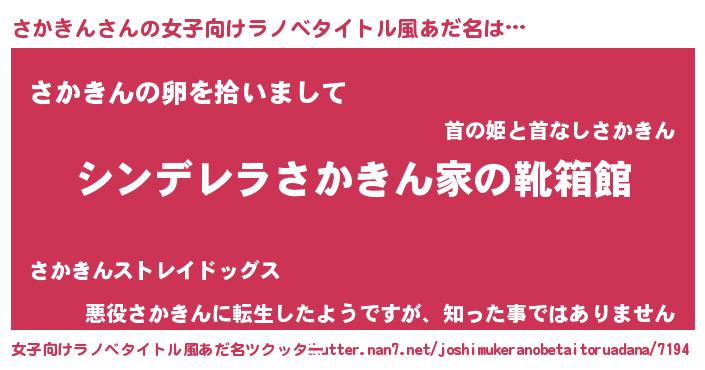 | 胡散臭い通販商品みたいなあだ名 | 『信頼と実績のネックレス…その名も「さかきん」』 |