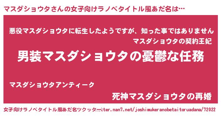 | 男性向けラノベタイトル風あだ名 | 『うちのマスダショウタが世界を掌握している!』 |