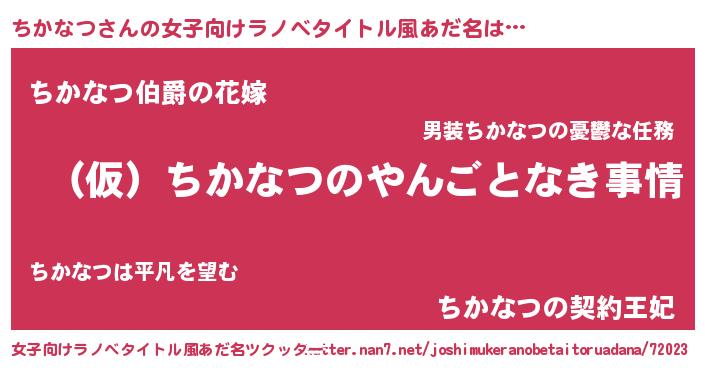 | 男性向けラノベタイトル風あだ名 | 『ちかなつの憂鬱』 |