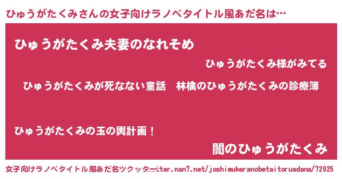 欧米人風あだ名 | 『ダレノガレひゅうがたくみ』 |