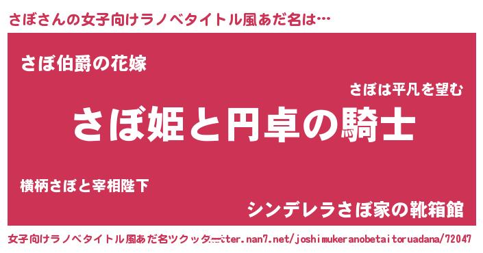 | 男性向けラノベタイトル風あだ名 | 『サボアートオンライン』 |