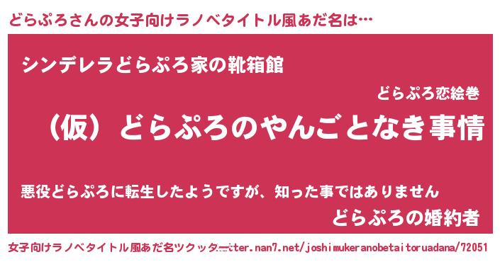 | 胡散臭い通販商品みたいなあだ名 | 『必ず成功する水晶球…その名も「どらぷろ」』 |