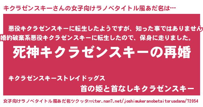 | 男性向けラノベタイトル風あだ名 | 『ノーゲーム・ノーキクラゼンスキー』 |