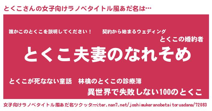 | 胡散臭い通販商品みたいなあだ名 | 『100人中100人が認めたマグネット磁石…その名も「とくこ」』 |