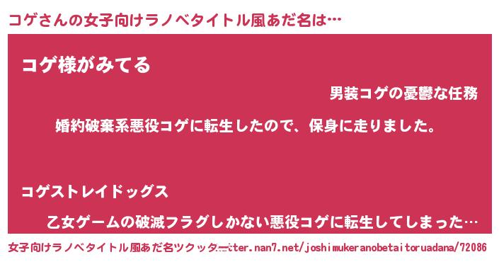 | 男性向けラノベタイトル風あだ名 | 『コゲスレイヤー』 |