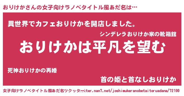 | 胡散臭い通販商品みたいなあだ名 | 『信頼と実績のサプリメント…その名も「おりけか」』 |