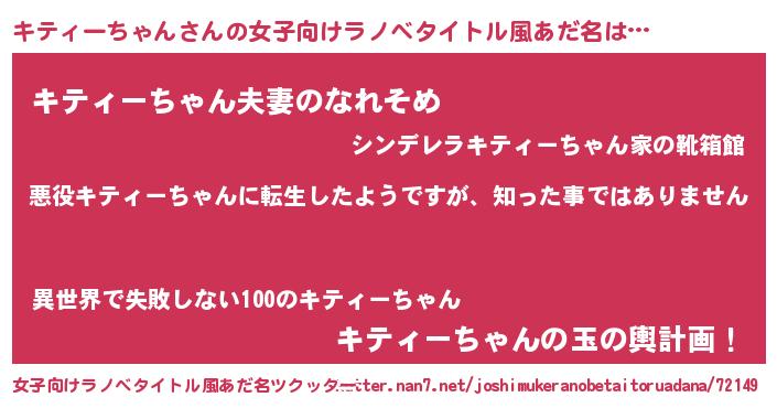 | 男性向けラノベタイトル風あだ名 | 『この素晴らしい世界にキティーちゃんを!』 |