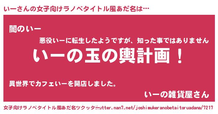 | 男性向けラノベタイトル風あだ名 | 『いー~年齢イコール彼女いない歴の魔法使い~』 |