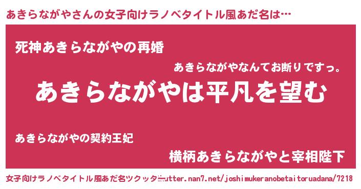 | 意味不明あだ名 | 『とにかく怪しいあきらながや』 |