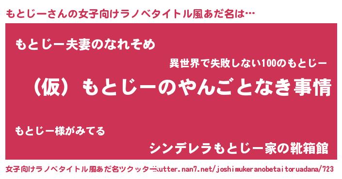 | 男性向けラノベタイトル風あだ名 | 『もとじーの憂鬱』『緋弾のモトジー』 |
