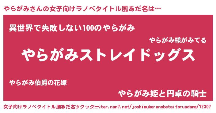 | 男性向けラノベタイトル風あだ名 | 『Re:やらがみから始める異世界生活』 |
