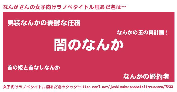 | 男性向けラノベタイトル風あだ名 | 『Re:なんかから始める異世界生活』 |