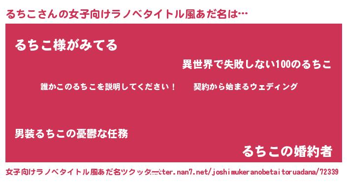 | 男性向けラノベタイトル風あだ名 | 『ルチコアートオンライン』 |