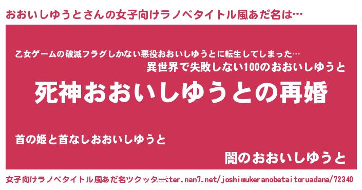 | 男性向けラノベタイトル風あだ名 | 『ノーゲーム・ノーオオイシユウト』 |