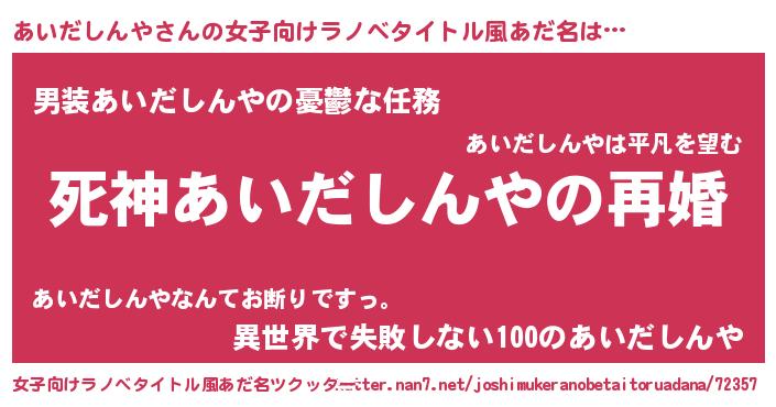 | 男性向けラノベタイトル風あだ名 | 『ノーゲーム・ノーアイダシンヤ』 |