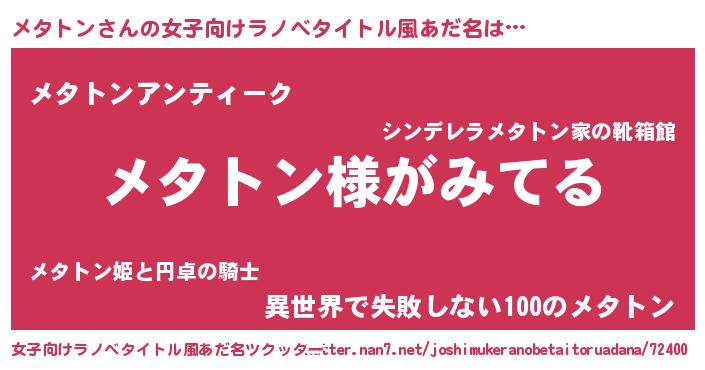 | ヘコむあだ名 | 『メタを』『メタトン(笑)』 |