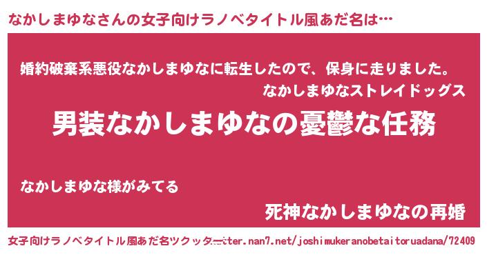 | 男性向けラノベタイトル風あだ名 | 『うちのなかしまゆなが世界を掌握している!』 |