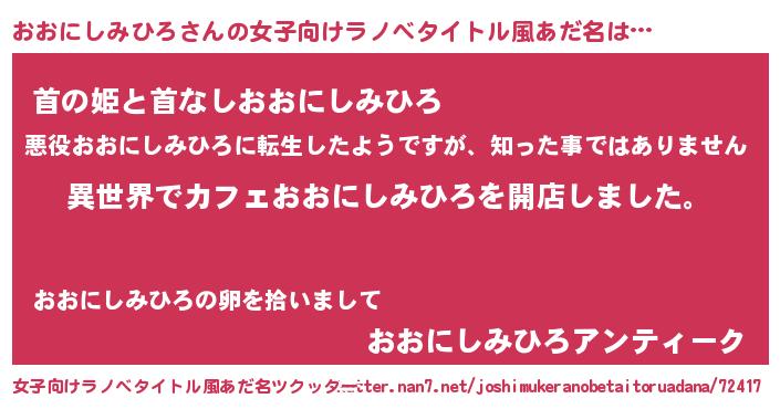 | ヘコむあだ名 | 『おおにしみひろ(笑)』『おおっ子』 |
