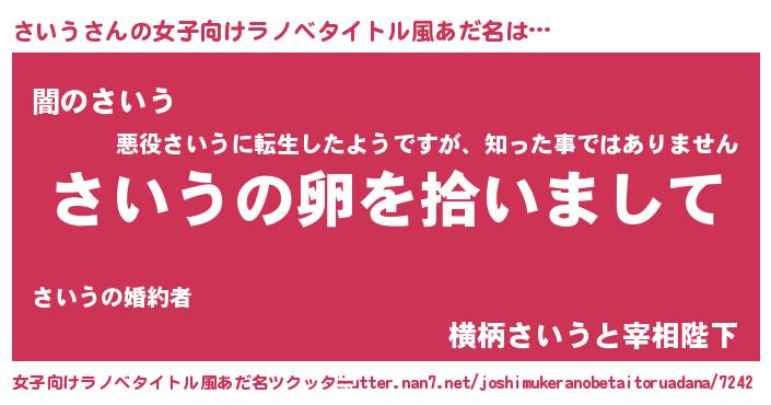 | 男性向けラノベタイトル風あだ名 | 『ダンジョンにさいうを求めるのは間違っているだろうか』 |