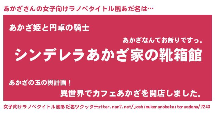 | 男性向けラノベタイトル風あだ名 | 『緋弾のアカザ』『魔法科高校のあかざ』 |