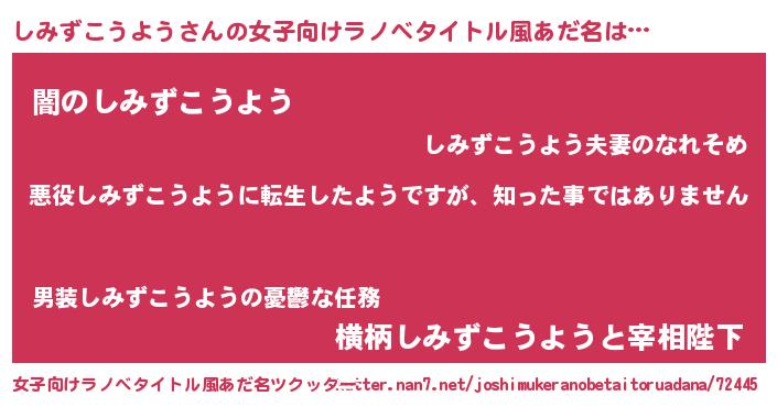 | 男性向けラノベタイトル風あだ名 | 『この素晴らしい世界にしみずこうようを!』 |