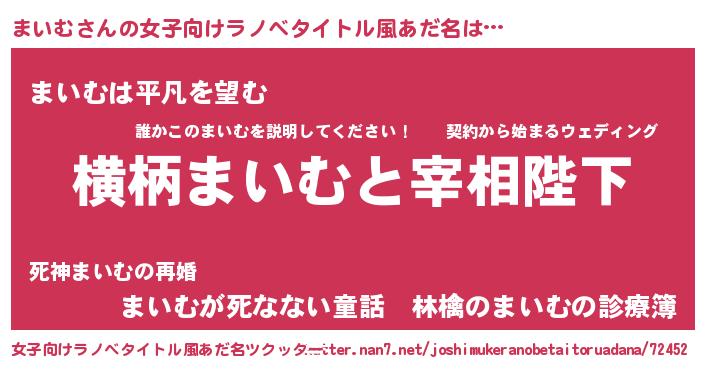 | 男性向けラノベタイトル風あだ名 | 『まいむに滅ぼされるだけの簡単なお仕事です』 |