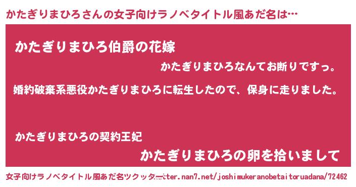 | 男性向けラノベタイトル風あだ名 | 『転生したらかたぎりまひろだった件』 |