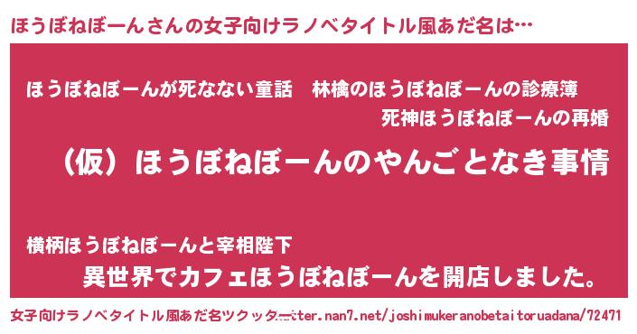 | 男性向けラノベタイトル風あだ名 | 『ほうぼねぼーんの憂鬱』 |